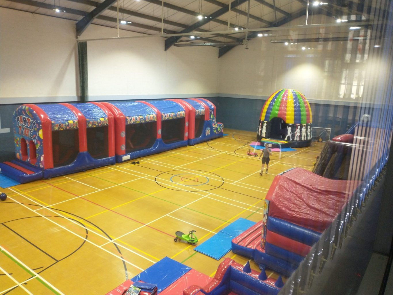 Our Sports Hall is available to book by the quarter, half or the whole hall. It is set up for a wide range of activities which include, Football, 4 Badminton/Pickleball Courts, Soft and Table Tennis, Netball, Basketball, Indoor Crown Green Bowls, Children Parties and many other activity sessions.